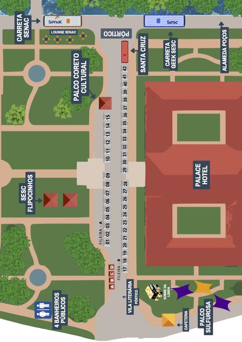 O Flipoços acontece no charmoso Parque José Affonso Junqueira, coração cultural de Poços de Caldas. É lá que o Festival recebe um grande público, reforçando sua missão de democratizar a leitura e ampliar o acesso aos livros.